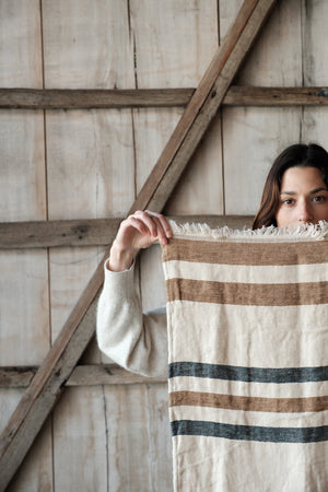 The Belgian Guest Towel Fouta 21.5"x25.5" Dakota stripe Set of 6